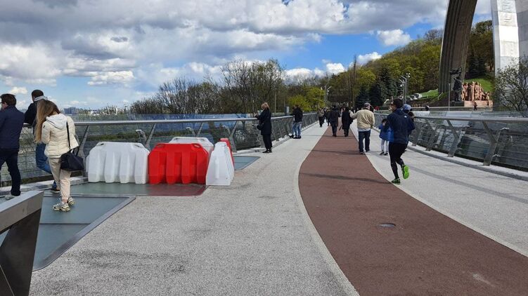 Место, где лопнуло стекло, ограждено. Отметим, что на мосту сейчас гуляет большое количество киевлян и гостей города.
