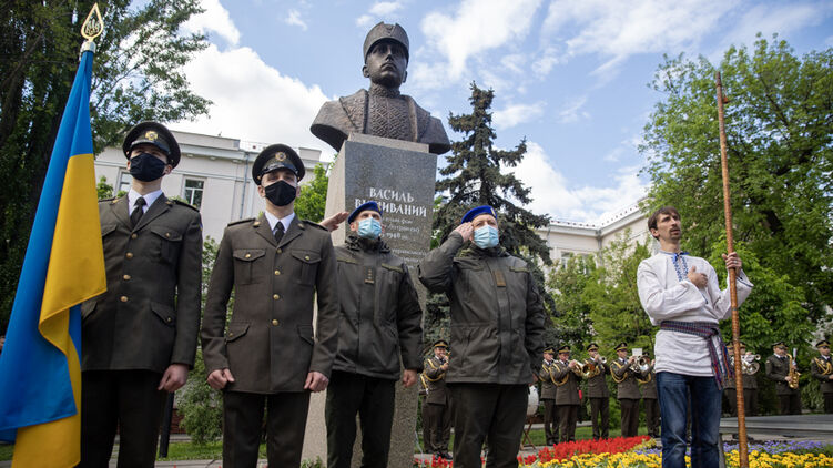 В Нацгвардии напомнили, что в марте президент Владимир Зеленский подписал указ о присвоении Учебному центру имени Василия Вышиваного. Поэтому именно гвардейцы открывали монумент.
