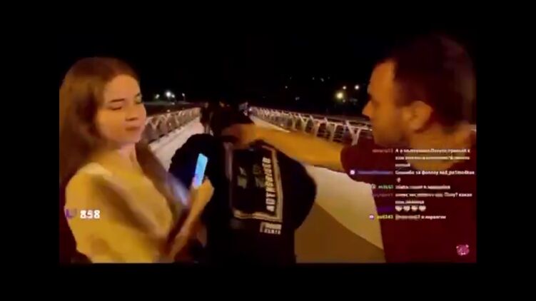 В Киеве на пешеходно-велосипедном мосту через Владимирский спуск произошла небольшая потасовка. Стример подошел к девушке и поцеловал ее в щеку. За это его по лицу ударил находящийся рядом мужчина.