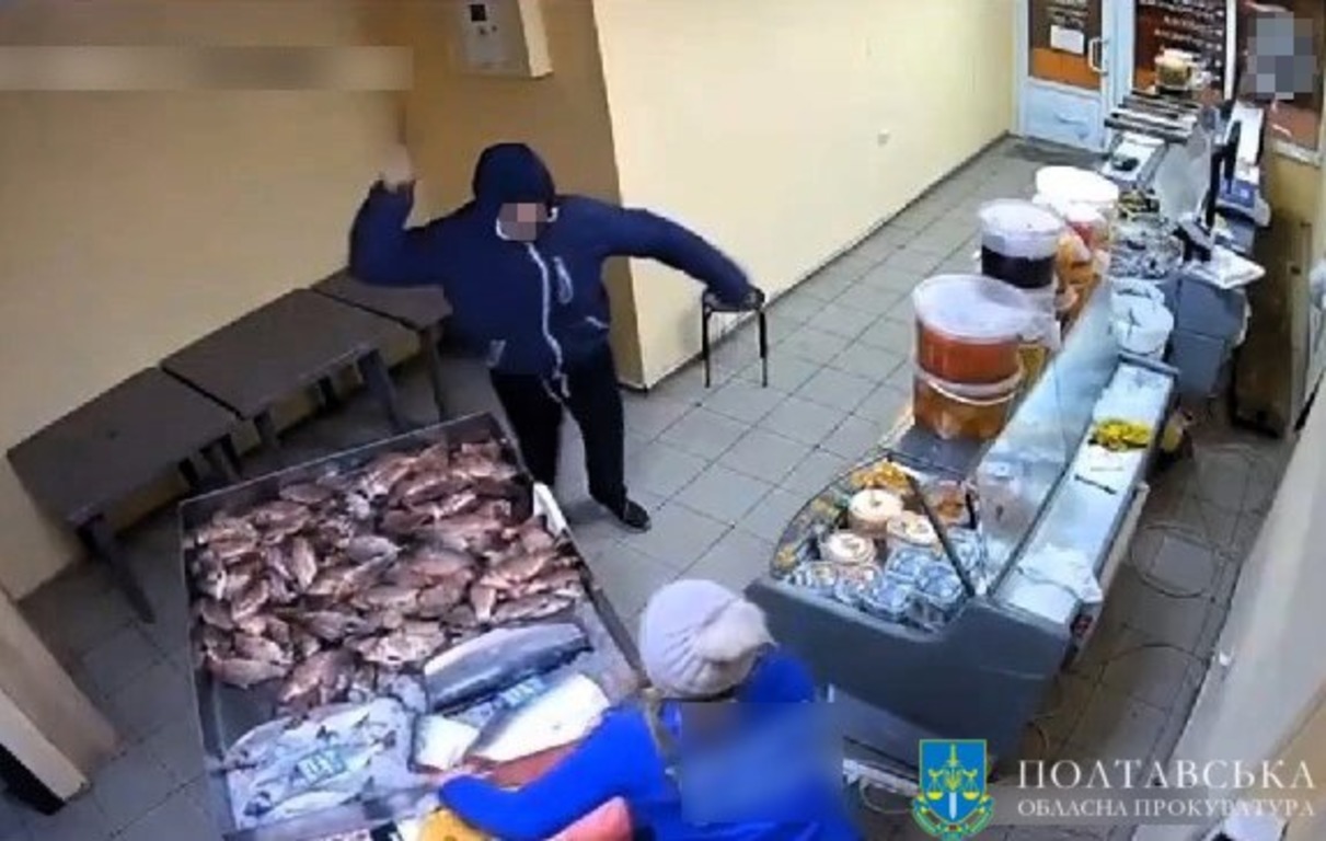 В Полтаве мужчина с ножом напал на продавщицу рыбного магазина.